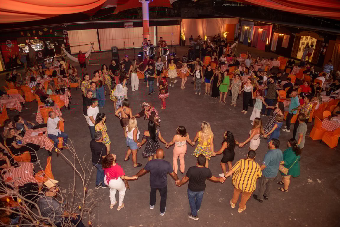 O som da sanfona conduz a noite, enquanto a quadrilha e a repentina trazem o verdadeiro espírito das festas nordestinas, proporcionando uma vivência cultural única para visitantes.